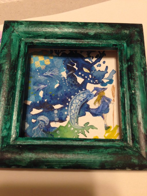 額の塗装が楽しくて中身放置してたのでやっと描きはじめた魔女展用の絵。 魔女と樹龍 原画は切ってしまいますが実は下まであるので此方はポストカードにでも…(下に油彩こぼして水彩原画ダメにした) #魔女展 #pico展 #ガチ制作会
