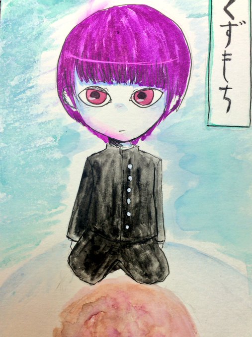 #学ラン版深夜の真剣お絵描き60分一本勝負 くずって言葉に敏感な子 水こぼしちゃって汚いです✌('ω')