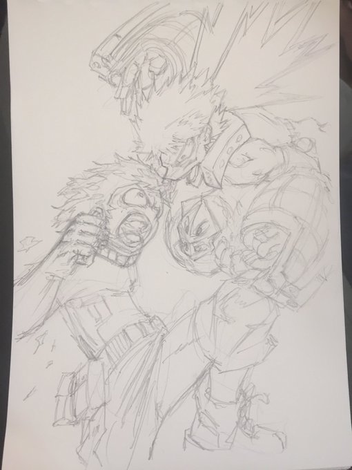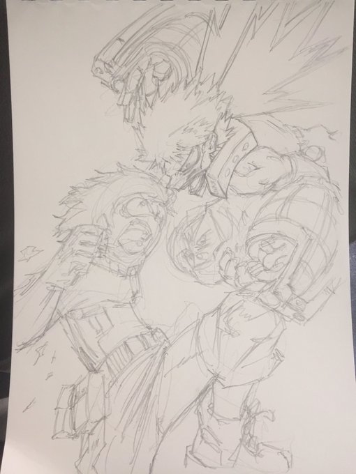 ようこんなラフでペン入れできたなって自分で思った。やっぱ90分模写は楽しい。#ヒロアカ #ヒロアカ絵描きさんと繋がりたい #緑谷出久 #爆豪勝己