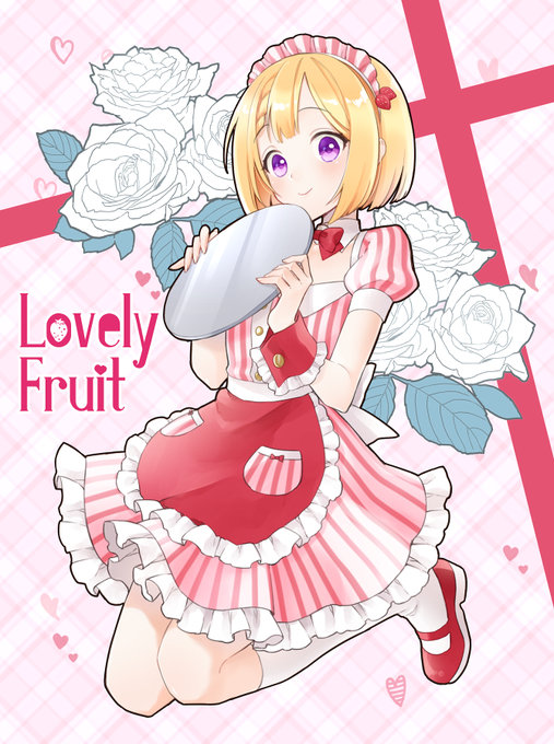 よく聞くアーティストから自分の作風っぽいの選んでもらうアンケで水樹奈々様に一番票が集まったのでLovely Fruitイメージのニーナらくがきしてました🍓 メイドさんではなくウエイトレスさんだと言い張る