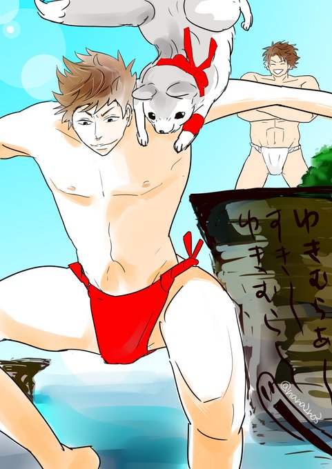 川で村正と水浴び