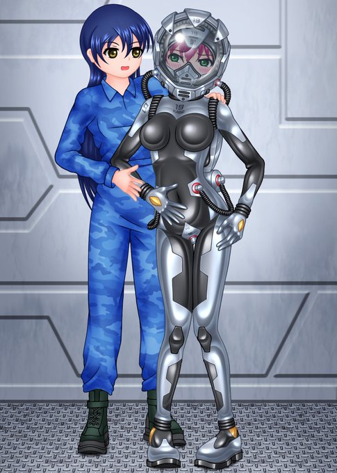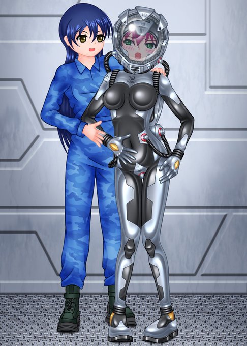 宇宙服のような密閉型のぴっちりパイロットスーツを着けた女の子と、装着のサポートをしたりメンテナンスをする女の子みたいな組み合わせ好き。。