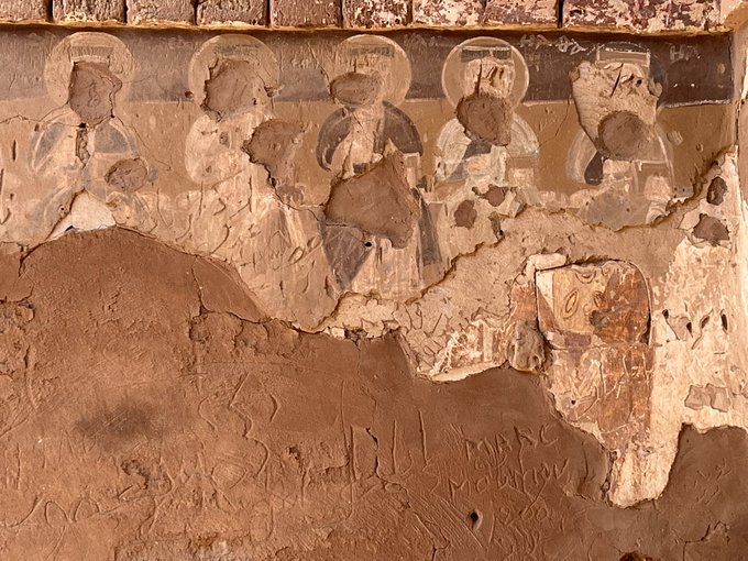 ヌビア(南エジプトとスーダン)への布教活動の拠点となった聖シメオン修道院跡(7世紀)のバシリカの後陣のフレスコ画は壊滅的