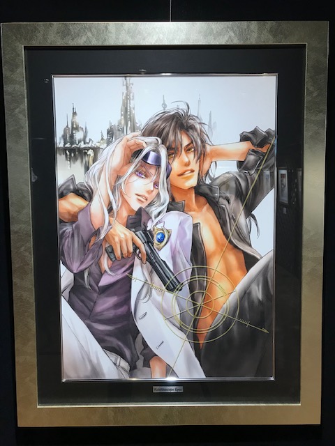 展示版画。「青の軌跡」ではカイのカレイドスコープアイに一点集中した手彩加工を。デル戦のリィは、特にアナログ絵時にモデリングペーストで盛りまくった髪を手彩で一点づつ再現していただいた工房の方との合体技を(絵自体はデジタル技術で版画用に大幅加筆修正)、ぜひ見て頂けたらと思ってます。 https://t.co/T3VoHbUogH