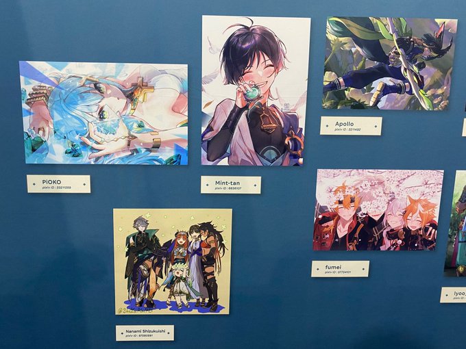 pixiv x 原神コラボギャラリーで自分が描いたファンアートの展示という機会をいただけて誠に光栄でした🌼ありがとうございました…!(いただいた掲載許可済お写真と元絵のティナリ師匠)