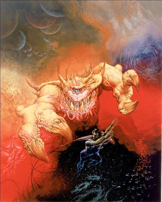 Jeff Easley's cover for AD&D Manual of the Planes. 1987. Hello mr. Cacodemon!