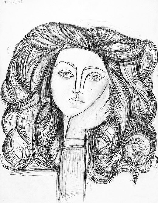 In the first drawing he seeks to capture animal movement, in the 2nd beauty, the 3rd frivolity & finally in the 4th an idea of form as visual mapping. Woman Washing her Feet (1944), Portrait of François (1946), Faun (1947) & Composition (1948)