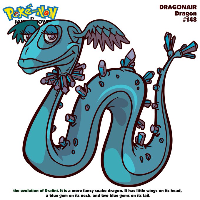 Gen 1 #Pokénon 148: My version of #Dragonair as described to me by my son who is a huge Pokémon fan. I only use his description, no reference. The second image is the official on brand look on that #Pokémon. #dailysketch #dailydraw #pokenon #monsterdesign Only 3 more in Gen 1.