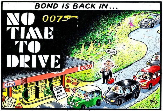 #NoTimeToDie #BondIsBack #fuelpanic #petrolshortage @Telegraph Telegraph cartoon 29.9.21