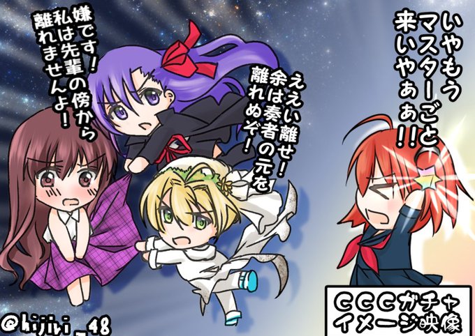 FGOぐだマシュ中心にぐだ子ハーレム4コマ風味でイシュタルとエレシュキガル他が騒いでます。よくあるよくある