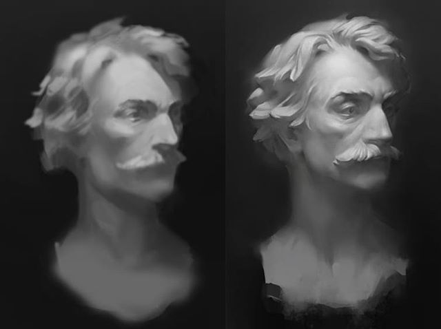 Another quick study, this one of a head painting taken from artstation I think. Didn't quite get to add in highlights and deepest shadows unfortunately - I know this is something that should be but at beginning to 'key' the painting - but I started the f… https://t.co/leRVih0kfr