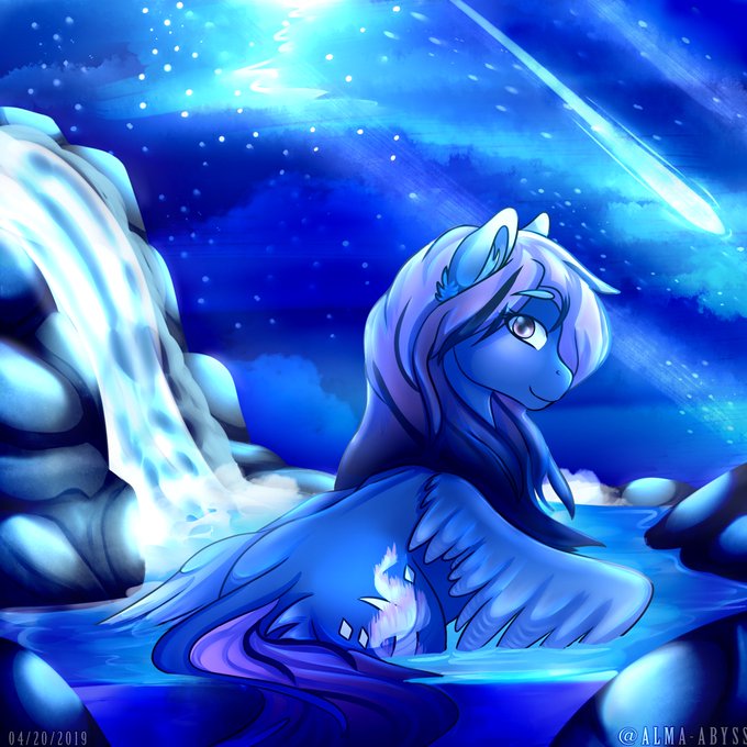 Oooh, its a pony chilling in the water with a galaxy sky above it! If you like my art so far then please consider commissioning me! <3 Retweet, comments like are appreciated! NO reposting. #ychauction #ych #commissionsopen #mlp #MyLittlePony #art #ocs #galaxy #waterfall #fantasy