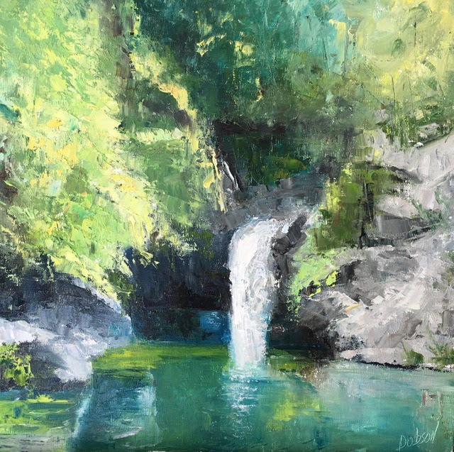 #picoftheday ~ Marin Dobson "Tranquility" 12" x 12" Oil #waterfall #painting #beautiful #tranquility #cascades #marindobson