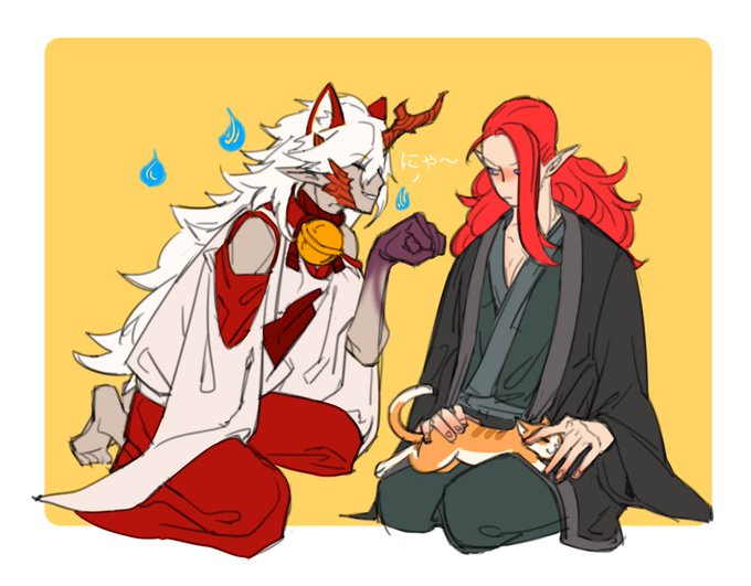 畫著畫著覺得鬼使黑頭上的金色裝飾形狀被我畫得有點像貓耳XD