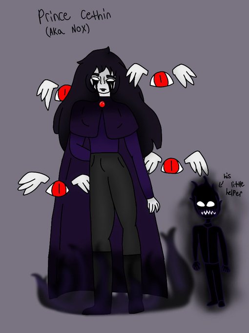 @artist_ironic Hiya! This is only OC I have posted but regardless this is Prince Cethin(or Nox)! He uses darkness/shadows to shapeshift and controls his powers(such as growing/shrinking abilities and creating a shadowy flame for a couple of examples this causes a weakness to bright tho) :)