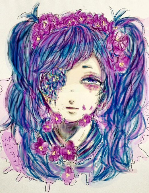@shutamago 遅くなりましたがタグRTありがとうございました!しゅたろさんのイメージで、ツインテール、花、いつもイラストに癒してもらってるのでふわふわっぽくしてみました!汚くてすみません、、これからもぜひよろしくお願いします!