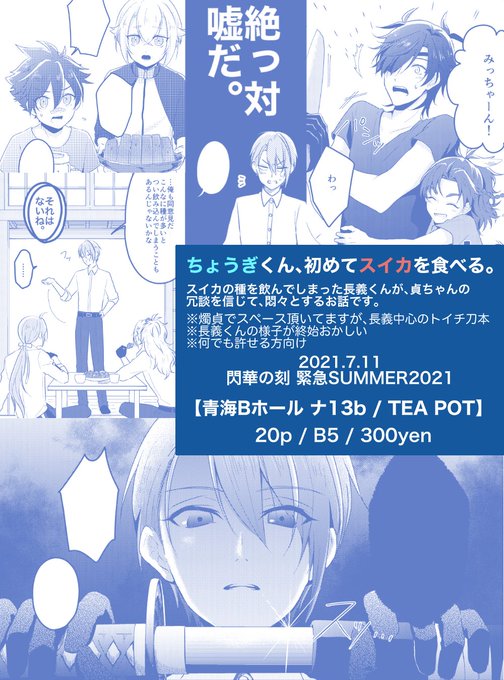 スイカの種を飲んじゃった長義くんが、貞ちゃんの冗談を真に受けて悶々とするふざけたお話だよ🍉