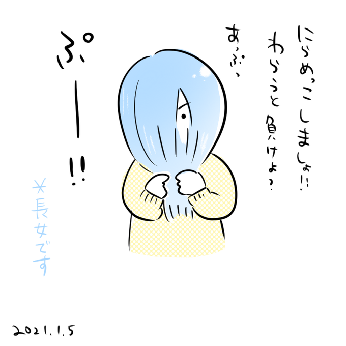 「にらめっこ、しましょ!笑うと負けよ!あっぷっぷー」と迫る長女に全力で変顔をして即KOさせる大人げない母は私
