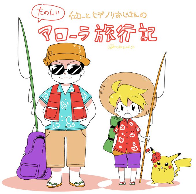 たのしいアローラ旅行記①(アローラに降りたってはしゃいでサングラスやアロハシャツ買っちゃうヒデノリおじさんとおじさんより荷物の少ないイエローとカントーでは見なかったお花でおしゃれするチュチュ)
