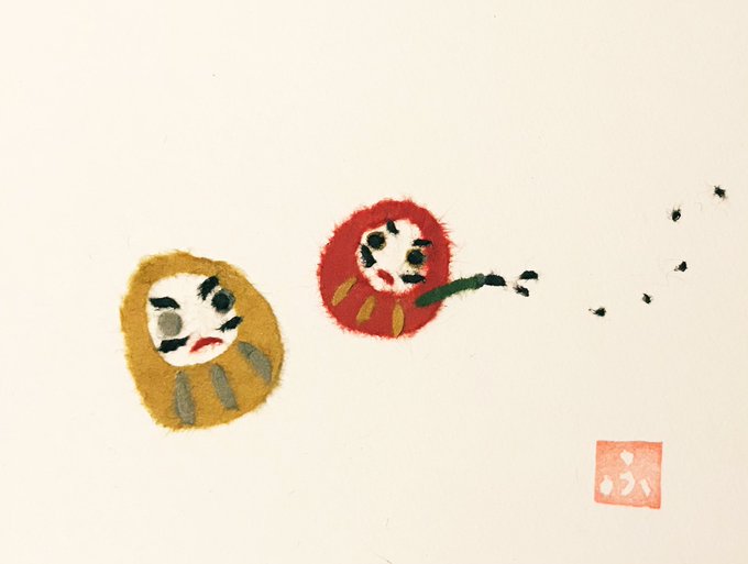 なんで、ダルマは逃げてるんだろう?なんでダルマは追いかけてるんだろう?作りながら、片目をまだ塗りたくなくて、よくわからない構図になった。