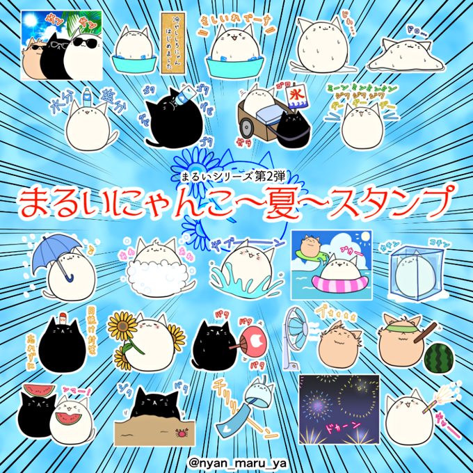 夏を楽しむにゃんこたちのスタンプがリリースされました!暑さを乗り切るお供にどうぞ!