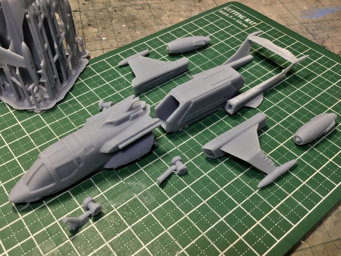 1機だけサポート外しました。数カ所エラーありましたがほぼ希望通りです。筋彫りは細過ぎて見えないですね。印刷物サイズに合わせたデフォルメってかなり重要だなとわかりました。形状やモールドはドガっと大袈裟な凹凸にしないと。もう1セットはサポート外さずに2次硬化してみます。