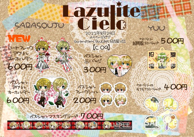 今回は沙羅双樹作品中心にベスシャルグッズを中心に頒布します。(間に合えばイメージ水引アクセも予定)
