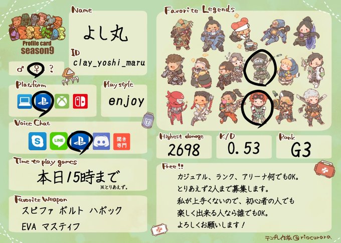 Apex自己紹介カード作りました🙋🏻♀️