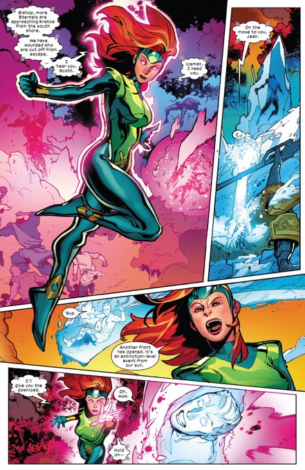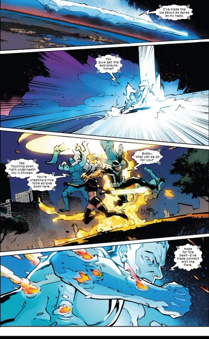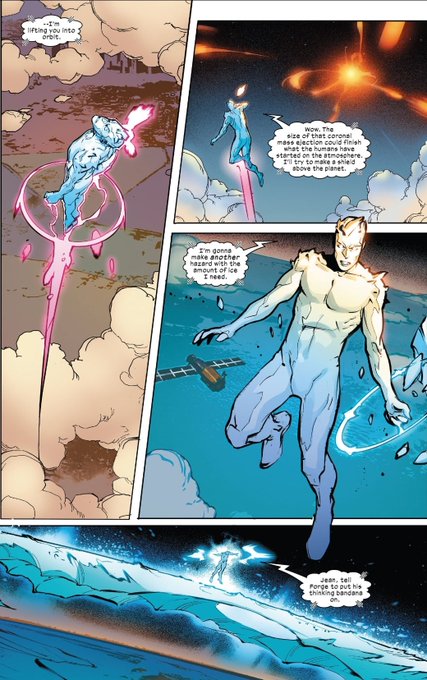 This was a cute little issue we got today, but the Iceman feats tho. Casually blocking and deflecting a Solar Flare that could've wiped out an Hemisphere. And that art and coloring looks amazing👏🏾 #XSpoilers