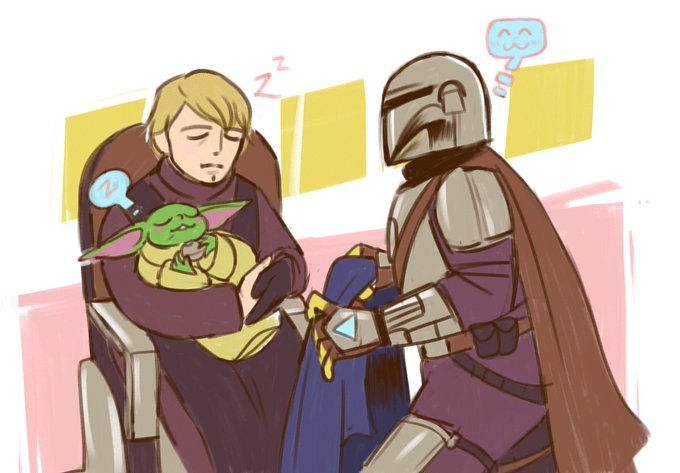 Found family dunluke & grogu mastertweet 🚀💗 (yeah no I'll continue drawing them fjfjfk) (#TheMandalorian spoilers I guess??)