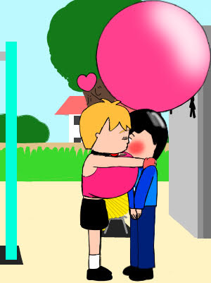 水鉄砲と水風船のようなもので遊ぶ代理を描いてみました