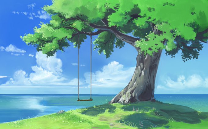 #anime_background #background_anime #tree #road #rock