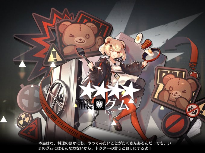 グムちゃ。ようやく昇進2。次の危機契約では多分使わないだろうけど、今回の危機契約では殴っちゃ受けない敵を他の敵を押さえつつブロックし続けると言う大任を果たしてくれたので、御褒美として、貴重な素材を使ってでも昇進。