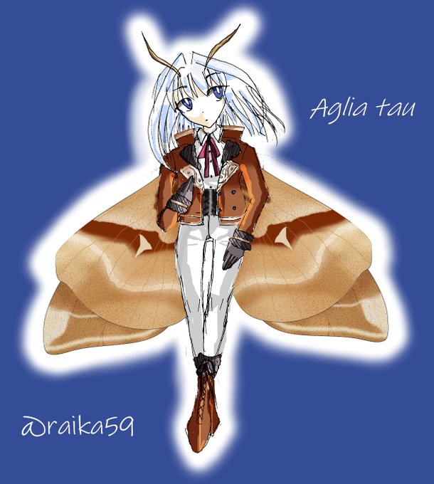 ライカさん(@raika59)完成しました!種はエゾヨツメ。ユーラシア大陸を中心に生息するヤママユの仲間。日本にもエゾヨツメは存在するが同属別種。この種の和名は無いが外国では種小名をとって「タウ・エンペラー」と呼ばれているようだ。 #リプくれた人を自分の世界観でキャラ化する