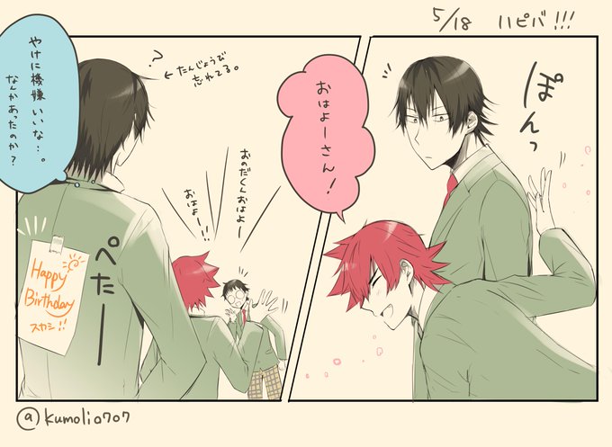 今泉くん誕生日だから周りにも祝ってほしいけど、「こいつ今日誕生日やねん」とは言いだせない鳴子くんの犯行(でもだれが背中に貼ったかは一目瞭然)誕生日おめでとう!!!! #imanaru_60min