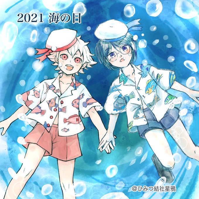 遅刻してしまいましたが #海の日 でした♪暑い日が続きますが、涼やかな結社美少年を楽しんでください🐟🐠🐋🐬