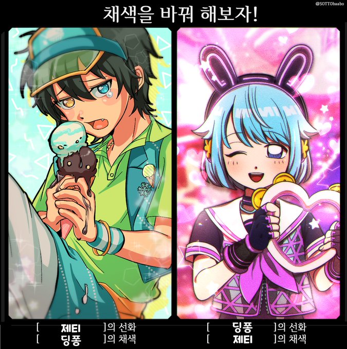 제티(@izzzztzzzzi)님과 채색 바꿔하기 합작 각각 앙스타 오시캐인 미카랑 하지메로 작업 했어요~넘넘 잼썼다 남/그/꾸♥(남의 그림 꾸미기><)