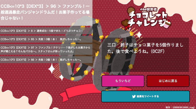 【CoC探索者チョコレートチャレンジ】(KPレスゲーム)