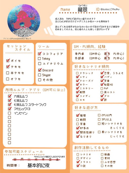 #TRPG自己紹介シート