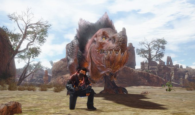 Wanted to make a little screenshot sequence that combines two of his favorite things: Anjanath, and big dangerous carnivores being cute and friendly!