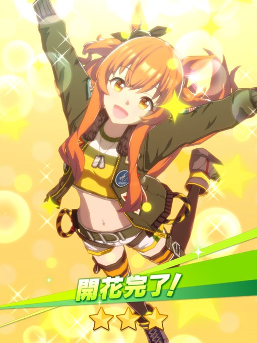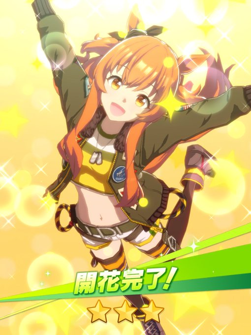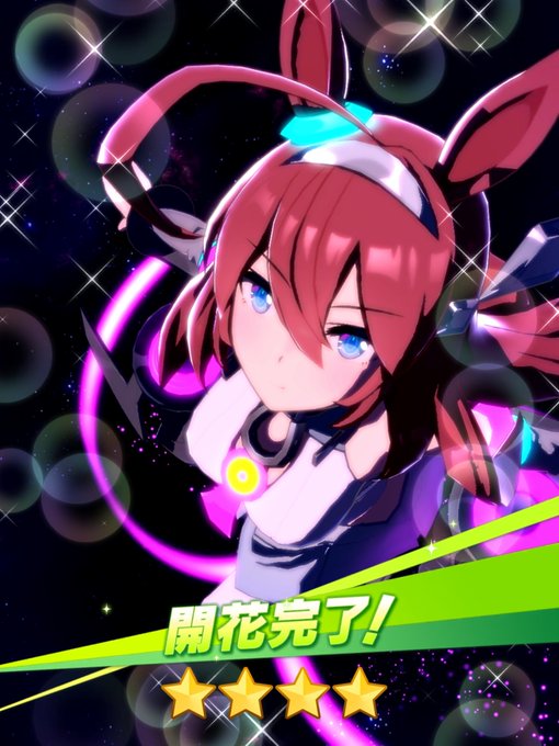 マヤノトップガン☆3開花できたー! 次育てる時は開花してからと思ってたから時間かかったw かわいいなーてか腰の輪っかは脱出する時に引っ張るやつではw そして左腕にトム猫のパッチを発見! #ウマ娘 #マヤノトップガン