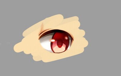 2.同じレイヤーを不透明度保護して濃い色塗って、瞳孔部分は少し明るい色で塗ります。上の方に白で薄くぽんぽんします。(水彩ウェット)