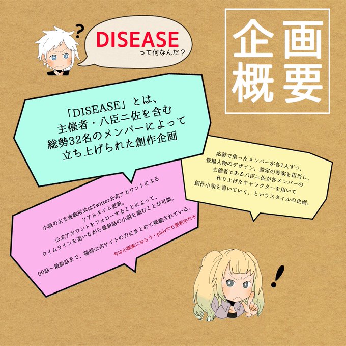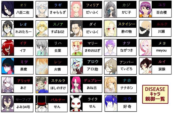 「DISEASEってなに?」「どんな話?」「キャラと参加者さんはどれ位いるの?」「キャラを借りる時はどうすればいいの?」を纏めました💊💊 #DDISEASE