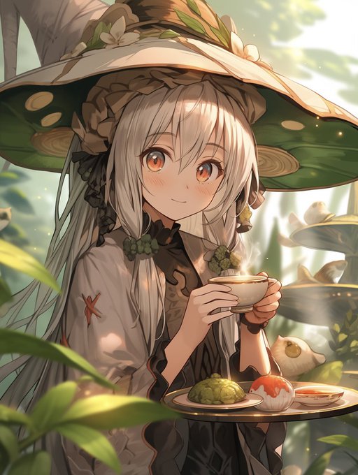 キノコガールとタケノコガールが仲良くお茶してるシーンをお願いしたく…☕️