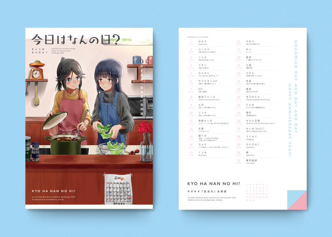 2/22のリズオンリーにて、のぞみぞ「記念日」合同『今日はなんの日?』を頒布します。30作(小説13作、漫画14作、イラスト3作)の合計300ページです。
