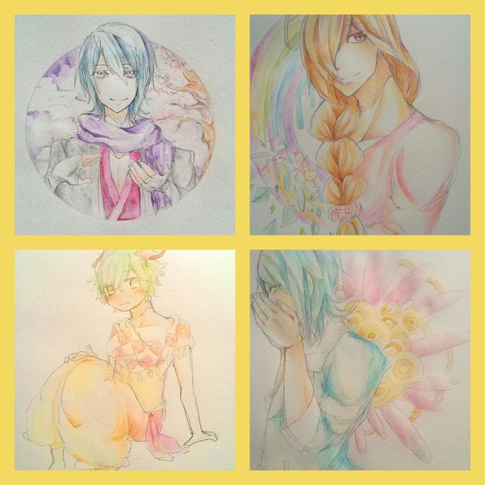 水彩と色鉛筆、コピックたまにアクリルなどで塗ってますー!!!