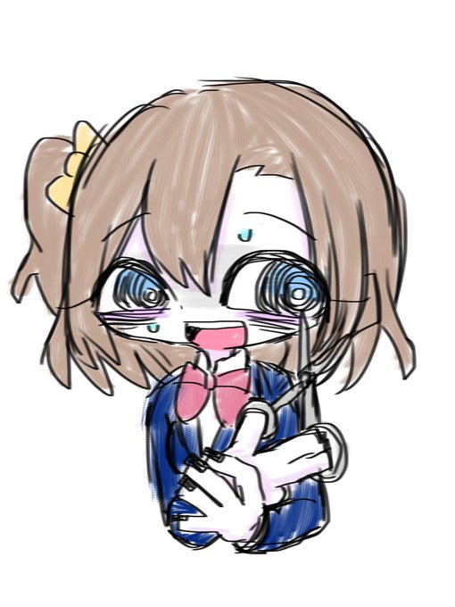 制服を着たままハサミで切断する穂乃果