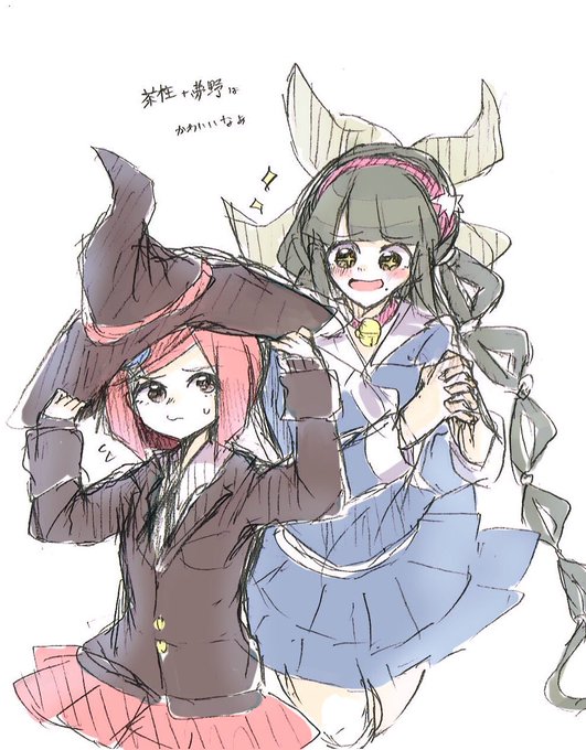 今日の落書きに色つけたやつ 転子ちゃんと秘密子ちゃんのペア可愛いくない??( ˘ω˘ )