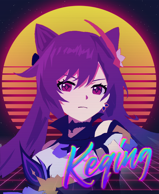 RetroWave 80s Keqing I decided to create this afternoon! 😌💜 #GenshinImpact #Synthwave