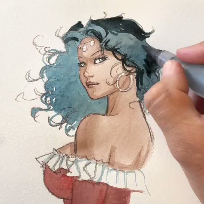 MEJAÏ Aquarelle de la série LE SCORPION 🦂 @dargaud #bd #marini #bandedessinée #dargaud #aquarelle #watercolor #acquerello #illustration #drawing #beauty #sensuelle #womandrawing #dessin #sexy #belle #glamour #painting #originalart #original #comics #comicart